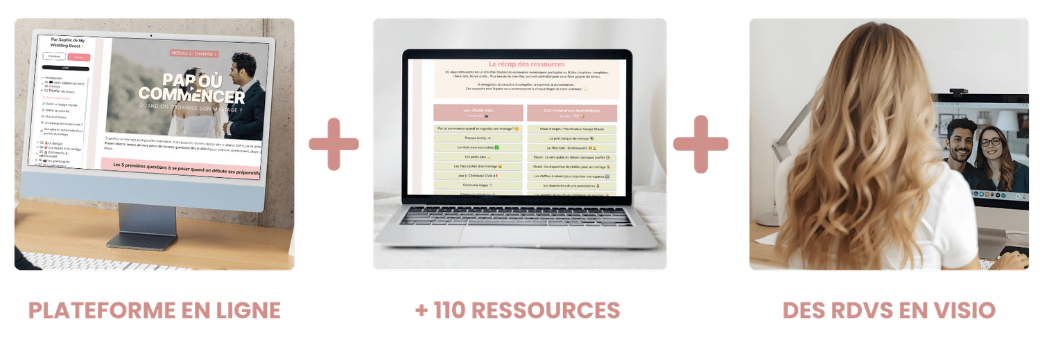 👉 Pour les futures mariées autonomes, qui veulent une méthode claire, fiable et des outils pros pour avancer à leur rythme, sans stress.