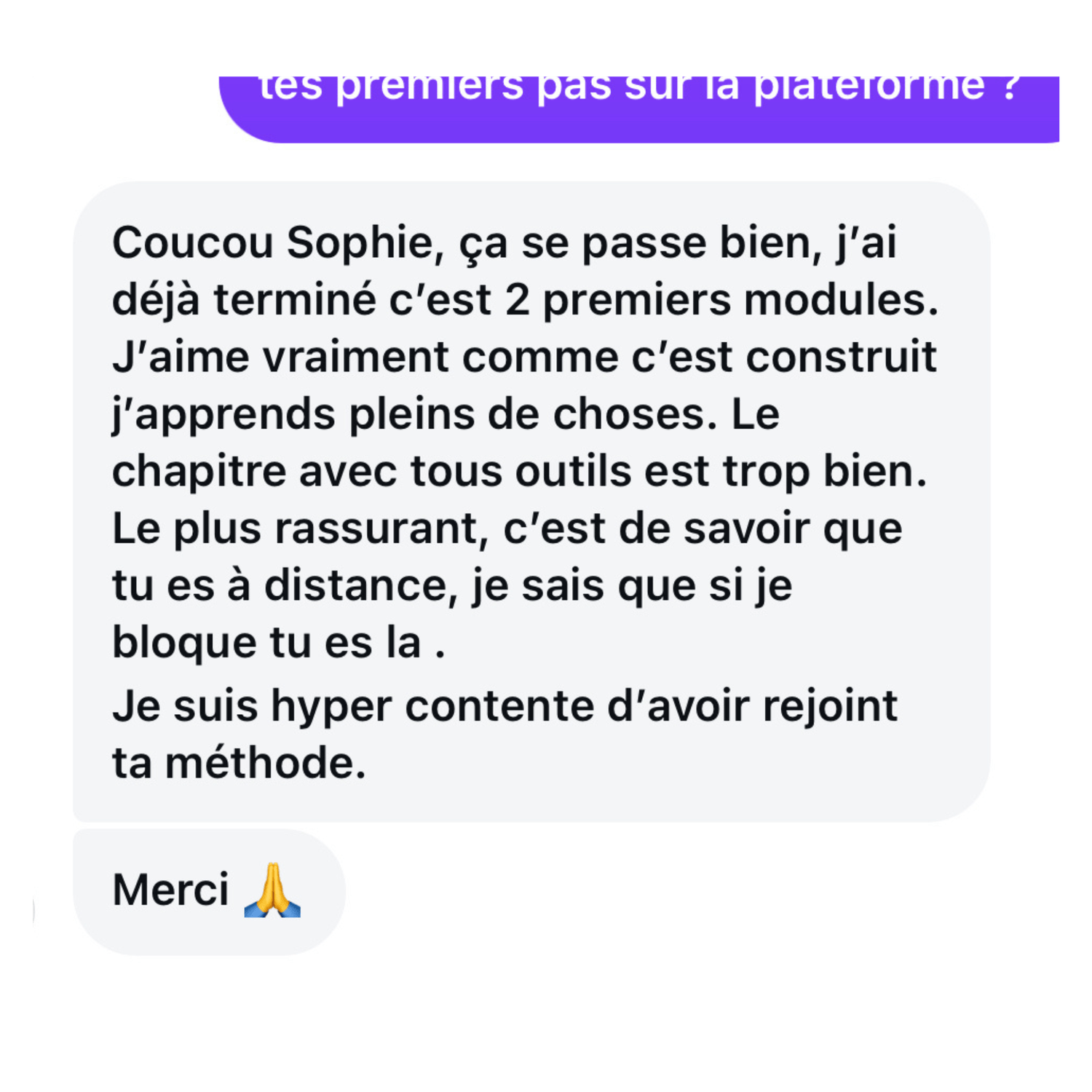 Chaque module est découpé en petites étapes : vidéos courtes, supports simples, et outils prêts à remplir. Vous pouvez avancer un peu chaque semaine, pendant votre pause déjeuner, le soir ou le week-end.